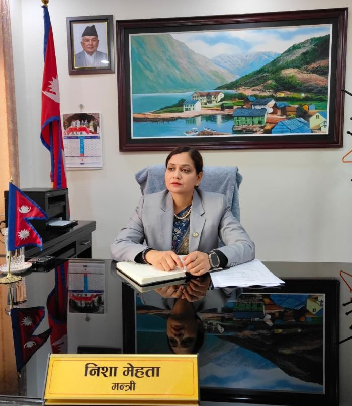 इनरुवा, १५ चैत । स्वास्थ्य तथा जनसंख्या मन्त्री निशा मेहताले आज खानेपानी मन्त्रालयमा पनि पदभार ग्रहण गरेकी छन्। नवगठित सरकारले उनलाई दुवै मन्त्रालयको जिम्मेवारी दिएको भए पनि प्रारम्भमा उनले केवल स्वास्थ्य तथा जनसंख्या मन्त्रालयमा मात्र पदभार सम्हालेकी थिइन्। सरकारले स्वास्थ्य तथा